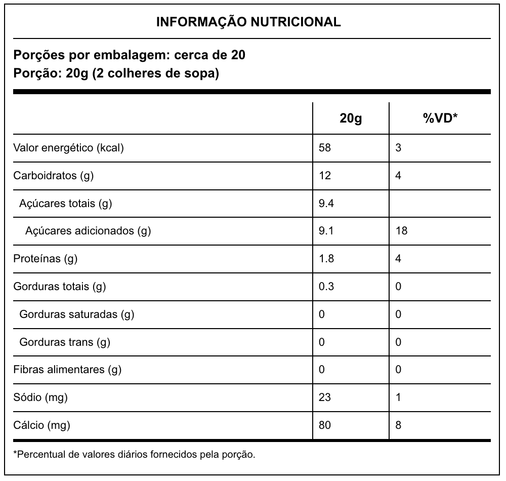 Leite concentrado, açúcar e lactose. Contém leite e derivados. Contém lactose. Não contém glúten.